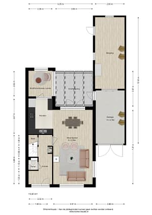 De aangebouwde garage is er één in XXL-formaat, namelijk 12.52 m. x 2.84 m.