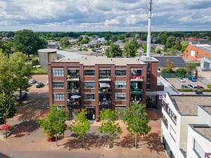 In hartje centrum bevindt zich het statige appartementencomplex de Markant. Het royale luxe appartement met berging en eigen parkeerplaats kijkt schitterend uit over het marktplein. Alle voorzieningen zijn op loopafstand. Het appartement bevindt zich op de tweede woonlaag en heeft een ruim balkon dat heerlijk gelegen is op het zuiden. Het gehele complex is gasloos gebouwd en voorziet in lage energiekosten. Door de grote raampartijen heeft het appartement veel lichtinval. De berging voor fietsen en eventueel opslag bevindt zich op de begane grond. Het appartementsgebouw heeft een lift en automatische deuren, dus comfortabel.
