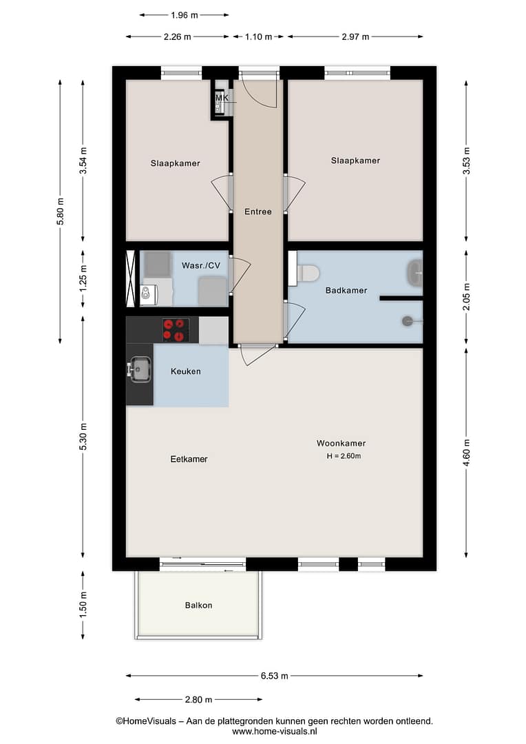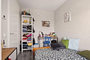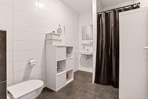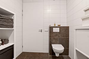 Indeling appartement: Hal met toegang tot 2 slaapkamers, badkamer met douchehoek, wastafel en een wandcloset. Tegenover de badkamer is de inpandige berging /technische ruimte gelegen met aansluitingen voor het witgoed. Aan het einde van de gang kom je in de woonkamer met open keuken en een balkon. De open keuken is voorzien van een keukenblok in hoekopstelling met vaatwasser, inductiekookplaat, afzuigkap, koel-/vriescombinatie en een combimagnetron.