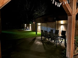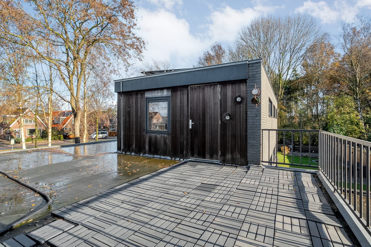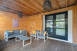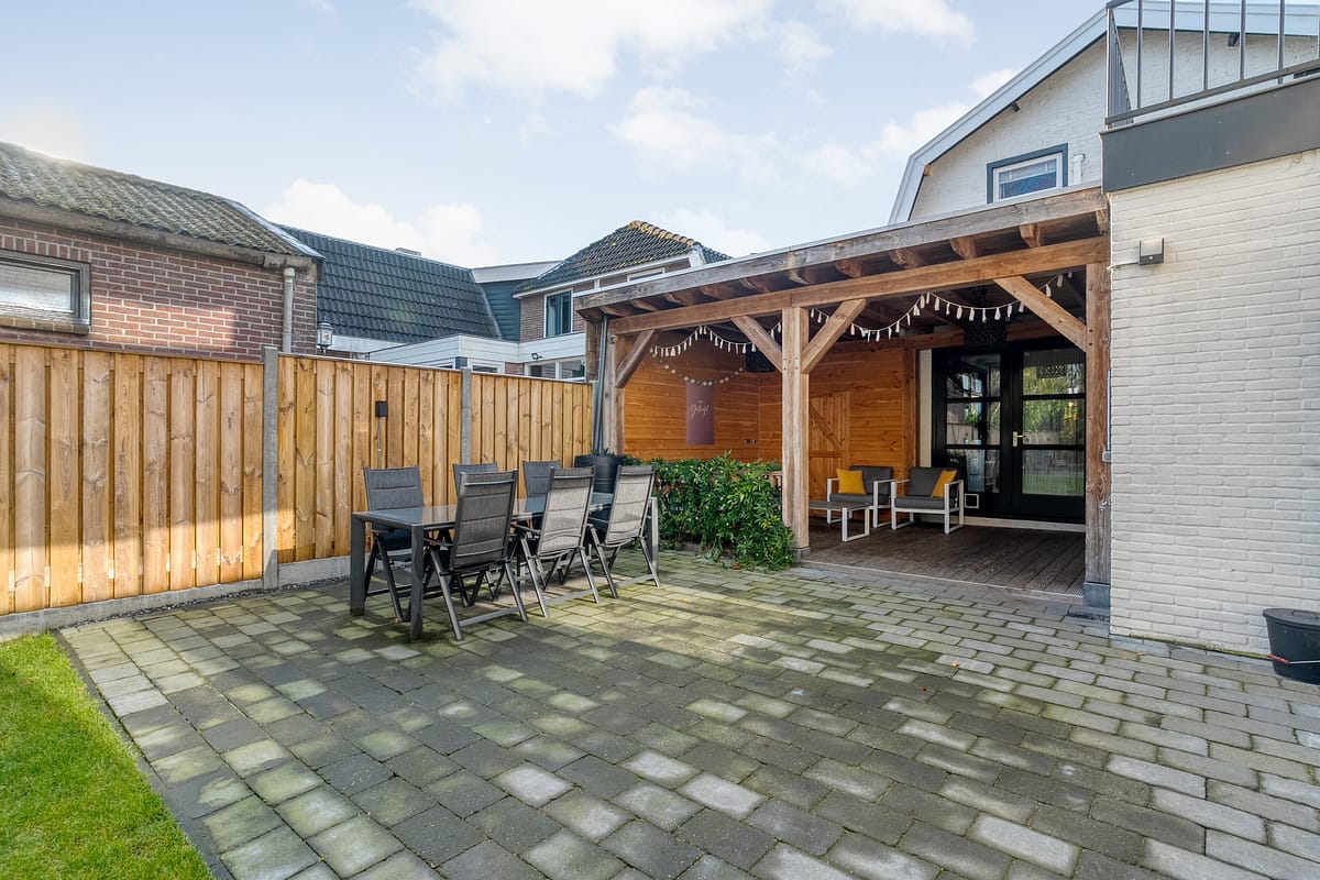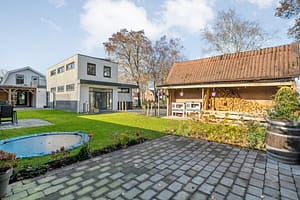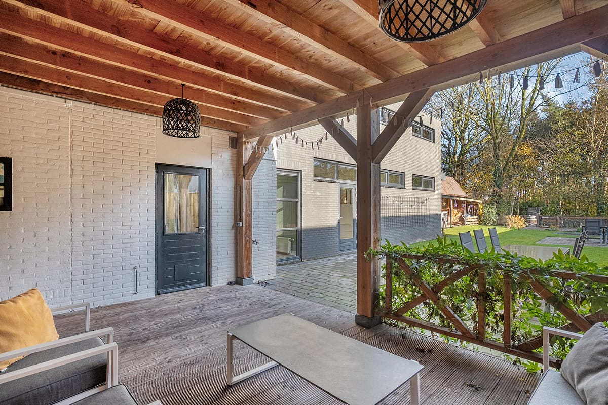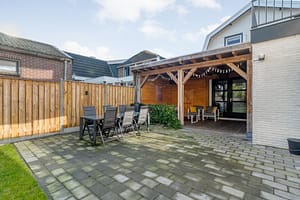 Verder bevindt zich in de tuin, aan de woning vast, een mooie ruime veranda van ca. 20 m². Deze is voorzien van elektra.