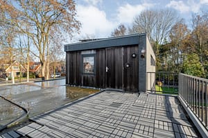 – In 2020 is het lage platte dak voorzien van 2 nieuwe dakramen en nieuw dakleer.