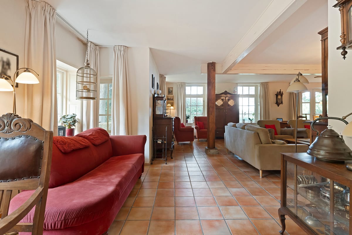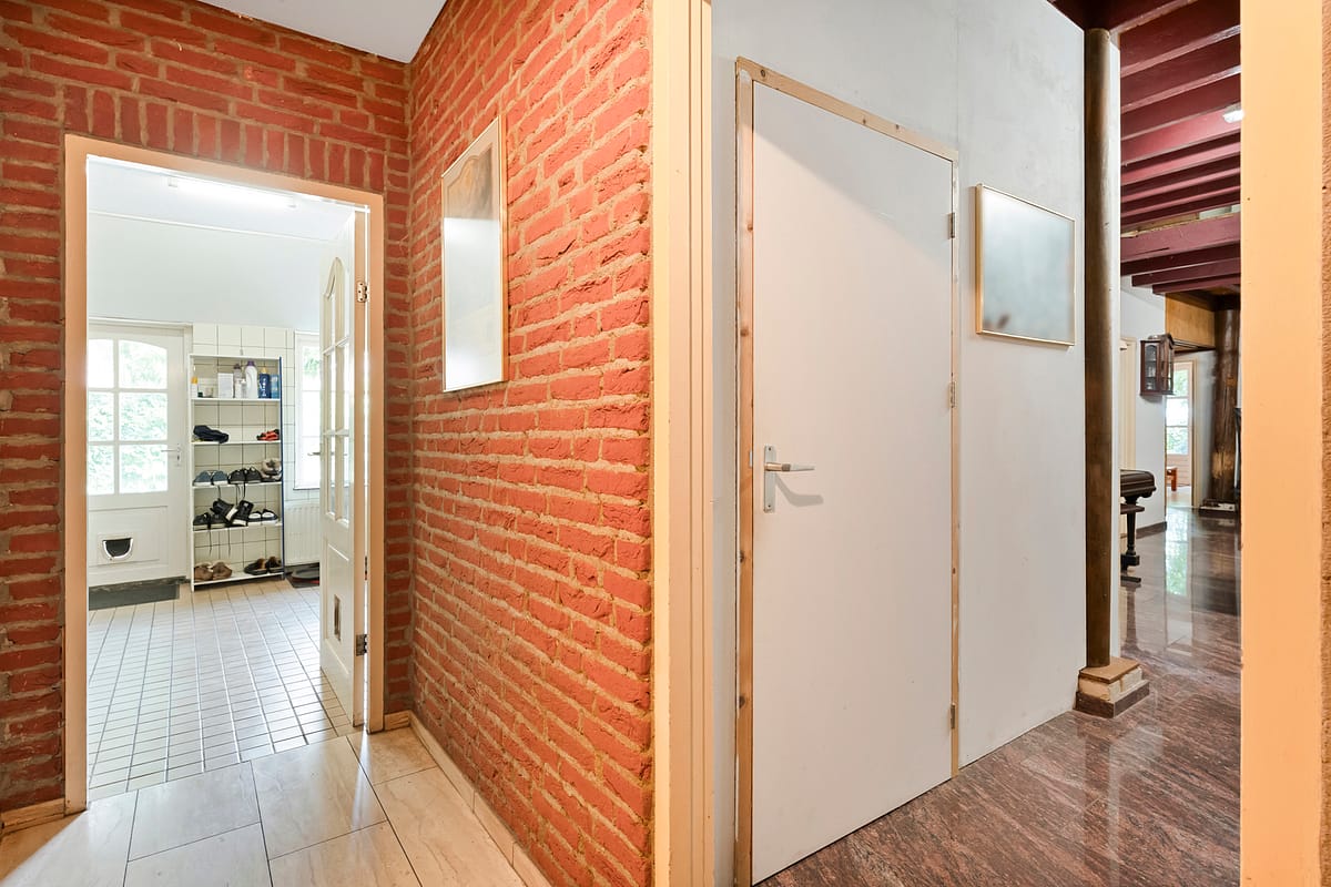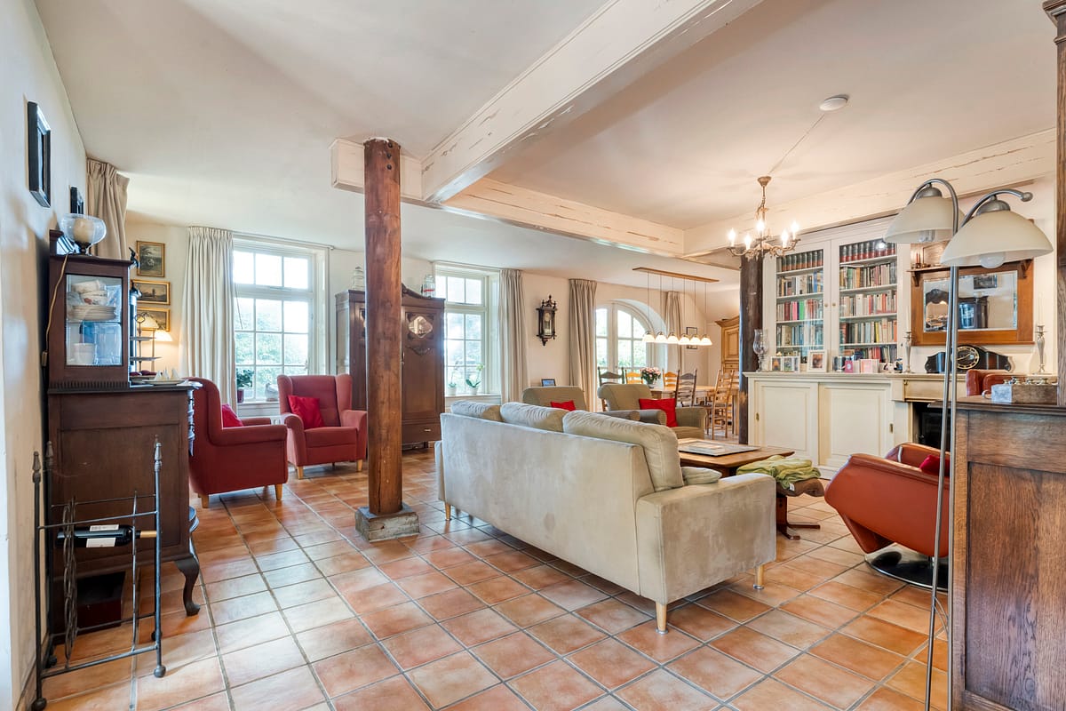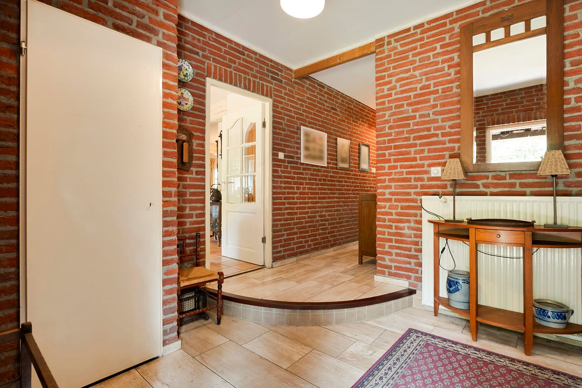 Begane grond: Entree, ruime hal, hangend toilet met fontein, gang met garderobe, royale sfeervolle woonkamer met gezellige houtkachel, balkenplafond, gebinten en openslaande tuindeuren, toegang tot keldertje, keuken voorzien van diverse inbouwapparatuur en een close-in boiler, bijkeuken met provisieruimte en witgoedaansluitingen, grote multi-functionele ruimte voorzien van fraaie granieten natuurstenen vloer, met daaraan 4 mooie slaapkamers, een hobbyruimte met aanrecht, een sauna en een badkamer voorzien van ligbad, bidet, toilet, douchecabine en wastafelmeubel. De grootste slaapkamer is tevens voorzien van openslaande tuindeuren en geeft toegang tot de 2e badkamer met douche en een wastafelmeubel.