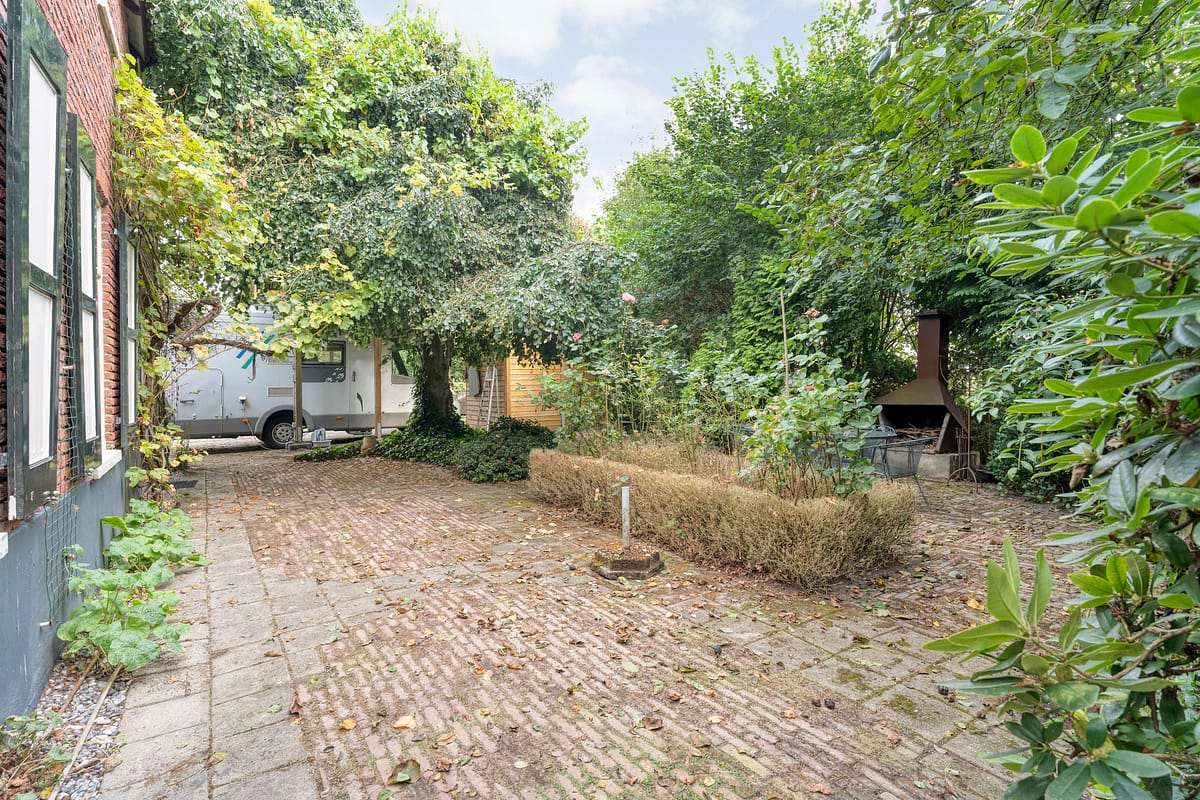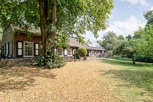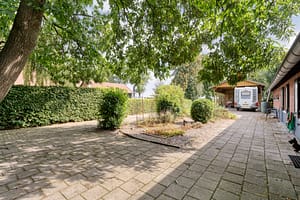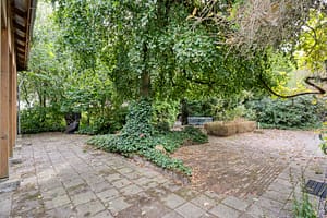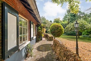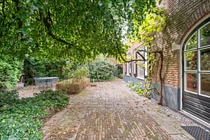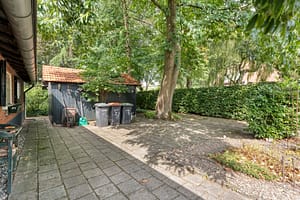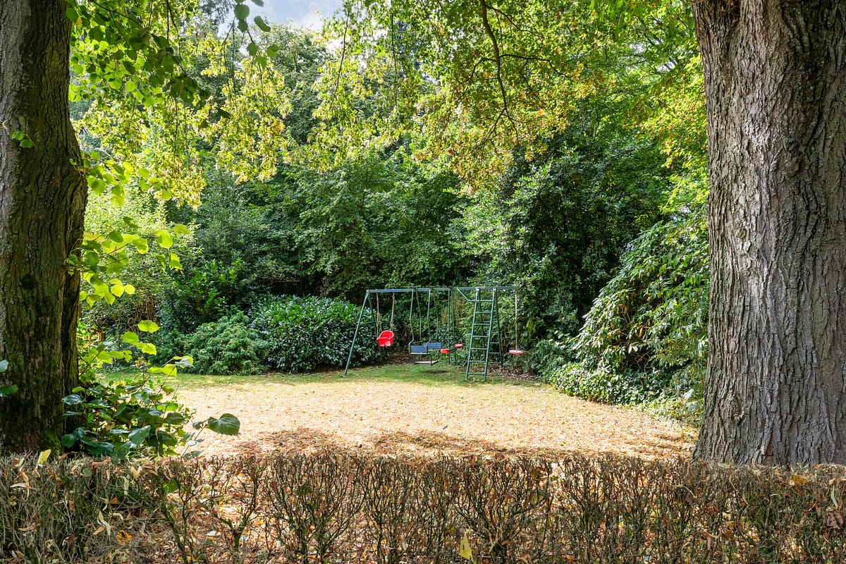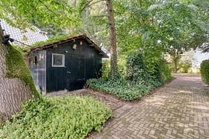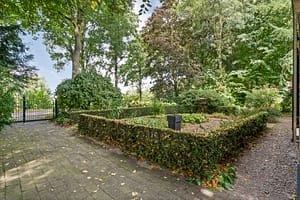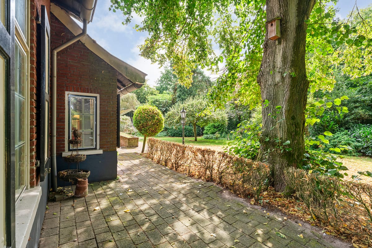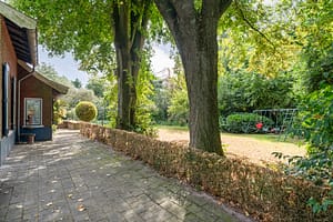 De woning is mooi op het perceel gelegen en is enigszins verscholen achter het groen. Rondom de woning is geen tuin gelegen met prachtige oude bomen zoals 3 oude lindebomen, tamme kastanje, notenboom, kweepeer, malus en tal van andere bomen en diverse terrassen waarvan 1 met terrashaard..