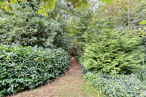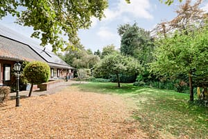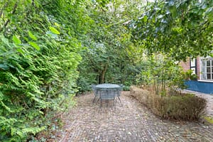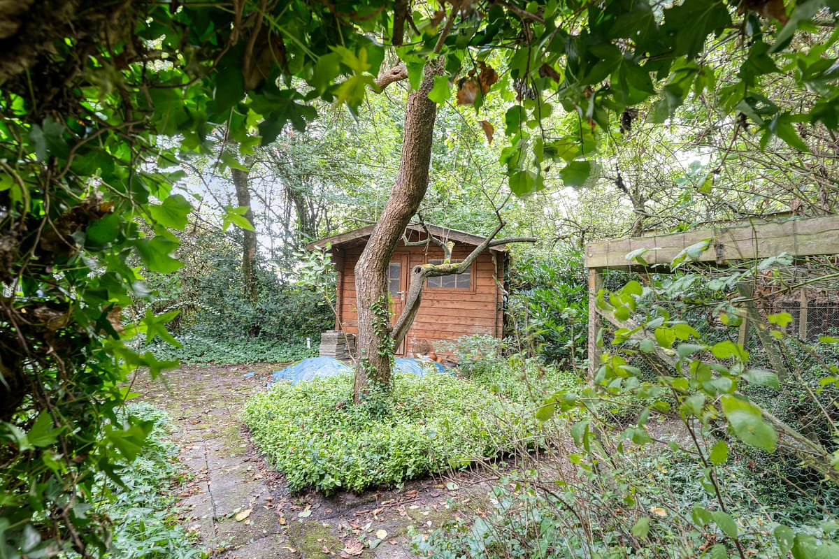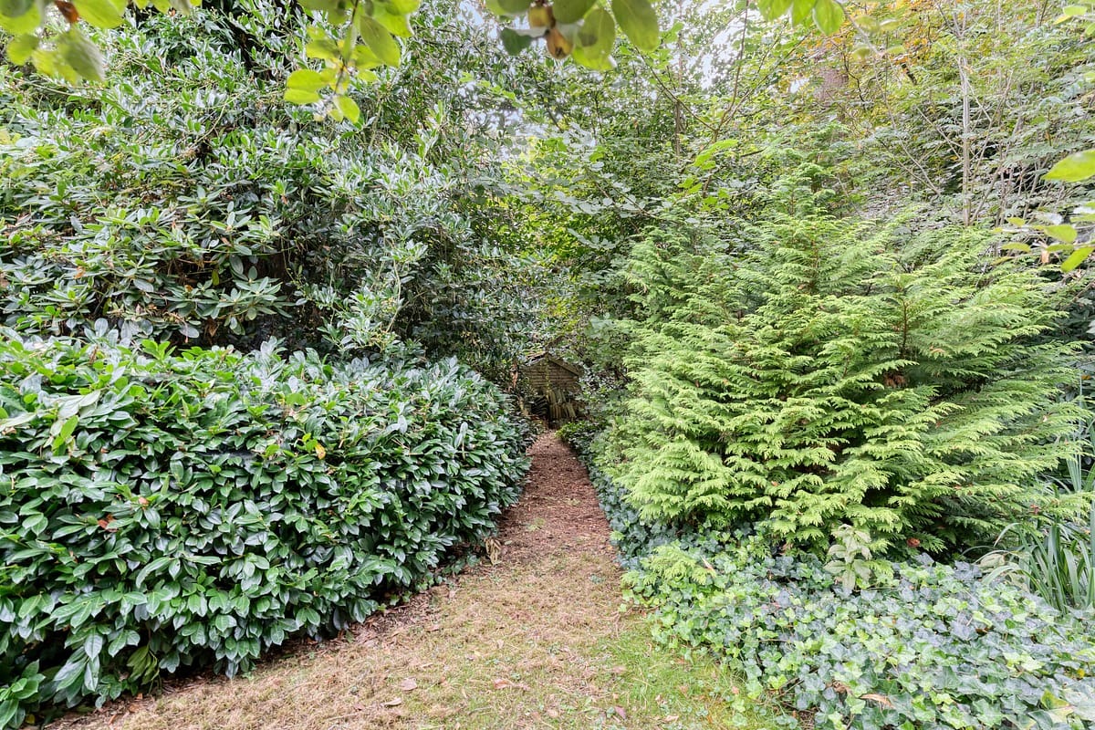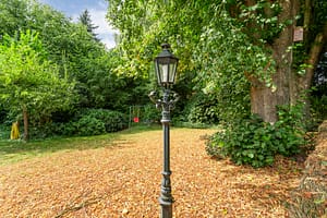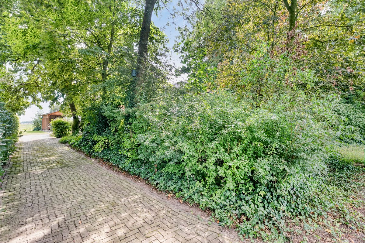 De woning is mooi op het perceel gelegen en is enigszins verscholen achter het groen. Rondom de woning is geen tuin gelegen met prachtige oude bomen zoals 3 oude lindebomen, tamme kastanje, notenboom, kweepeer, malus en tal van andere bomen en diverse terrassen waarvan 1 met terrashaard..