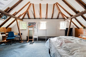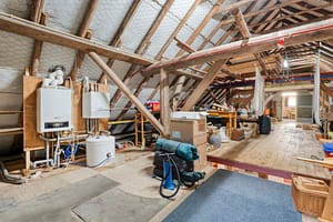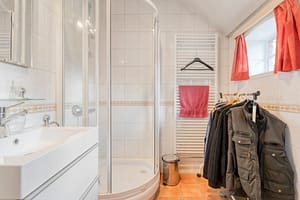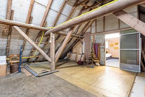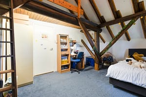 Via een vaste trap is de verdieping 1e bereikbaar. Dit betreft o.a. een hele grote zolderruimte met opstelplaats voor de CV-combiketel, de hybride warmtepomp en de omvormers ten behoeve van de zonnepanelen. Op deze verdieping bevinden zich ook nog twee ruime slaapkamers. Het is tamelijk eenvoudig om op deze verdieping meerdere extra kamers en een extra badkamer te realiseren.