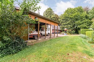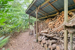 Achter op het perceel is een eenvoudige gastenverblijf gelegen. Het gastenverblijf is voorzien van een woon-/slaapgedeelte, een eenvoudige keuken en toilet met douche. Deze is aangesloten op de riolering. Ten behoeve van stalling van de auto en de caravan of camper is er een grote carport met daarbij een berging die is voorzien van gas en elektra aansluiting. Op het perceel bevindt zich ook nog een kippenhok en een houten tuinhuis van 14m2 welke is voorzien van een elektraaansluiting.